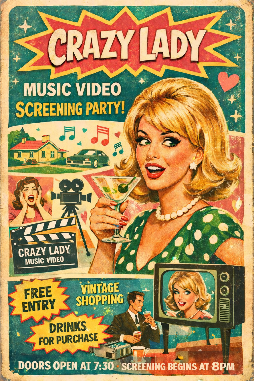 Jan 31, 2026 7:30 PM (PST) → Jan 31, 2026 8:30 PM (PST) | Sat, Jan 31 • 7:30 PM–8:30 PM | Sat, Jan 31, 2026 | Music video release party with vintage shopping and drinks. | Burbank | Suggested donation $10 | Yes Baby Vintage: 3420 W Magnolia Blvd, Burbank, CA | megansbeattie@gmail.com | CRAZY LADY – MUSIC VIDEO RELEASE PARTY DOORS OPEN @ 7:30 SCREENING BEGINS @ 8PM 🛍️ Vintage shopping before and after the screening 🥂 Complimentary drinks available 💖 Suggested $10 donation to help support the event 🎥 Music video premiere + photos | Jan 30, 2026 8:23 AM | |||||