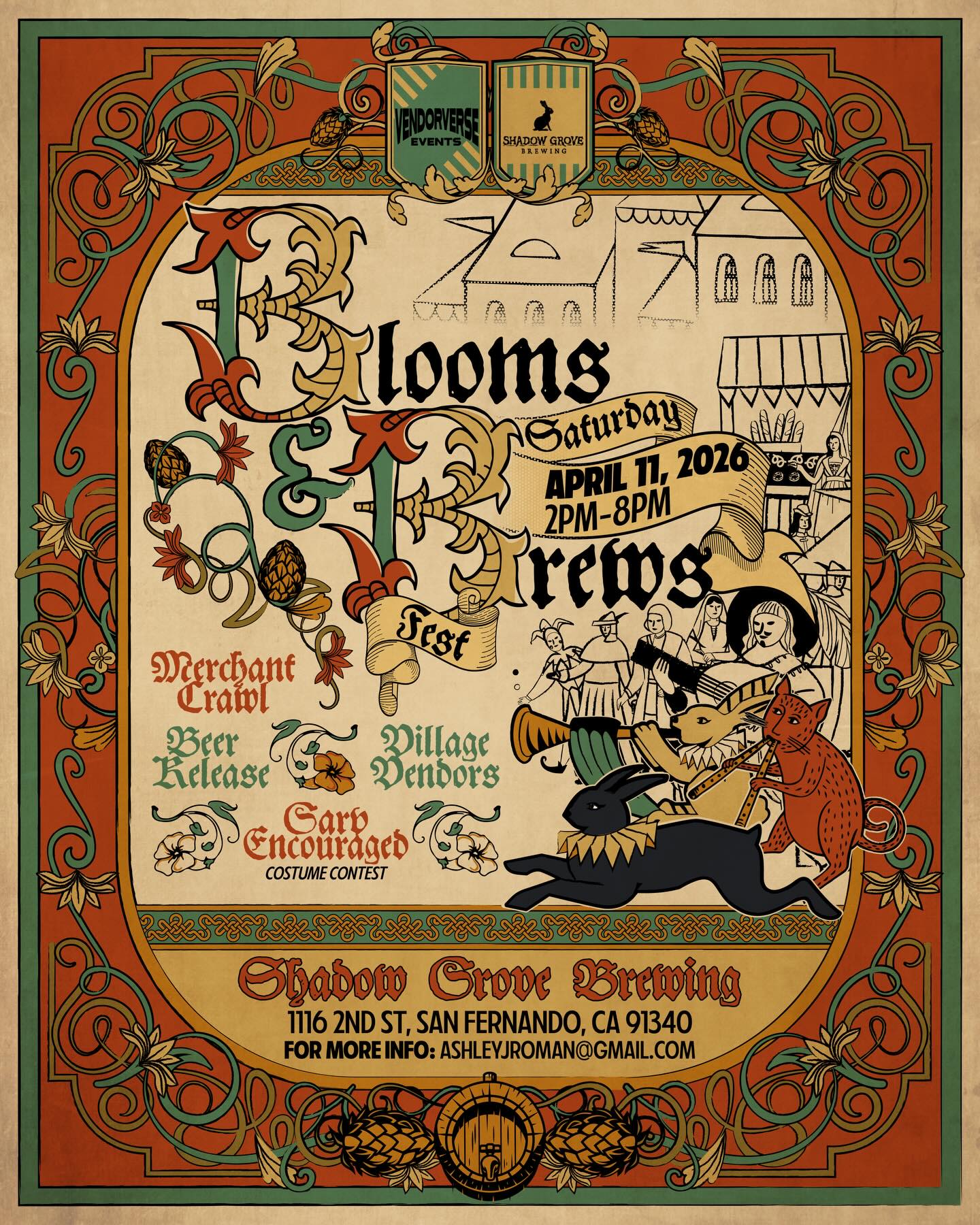 Blooms & Brews is all about fun and adventure with activities scattered throughout the day. Expect a new spring menu featuring mimosas and coffee boxes, free bracelet making, and even a cookie class that requires reservations. There will also be a beer release, village vendors, and a costume contest to keep the festivities lively.