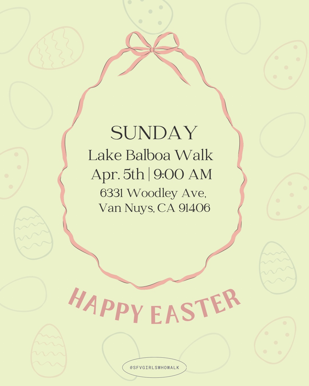 Event TypeCommunity📍 NeighborhoodsLake BalboaDate & TimeApr 2, 2026 9:00 AM (PDT) → Apr 5, 2026 9:00 AM (PDT)Address or Location6331 Woodley Ave, Van Nuys, CA 91406URLhttps://www.instagram.com/sfvgirlswhowalk/Photo (No PDFs!)