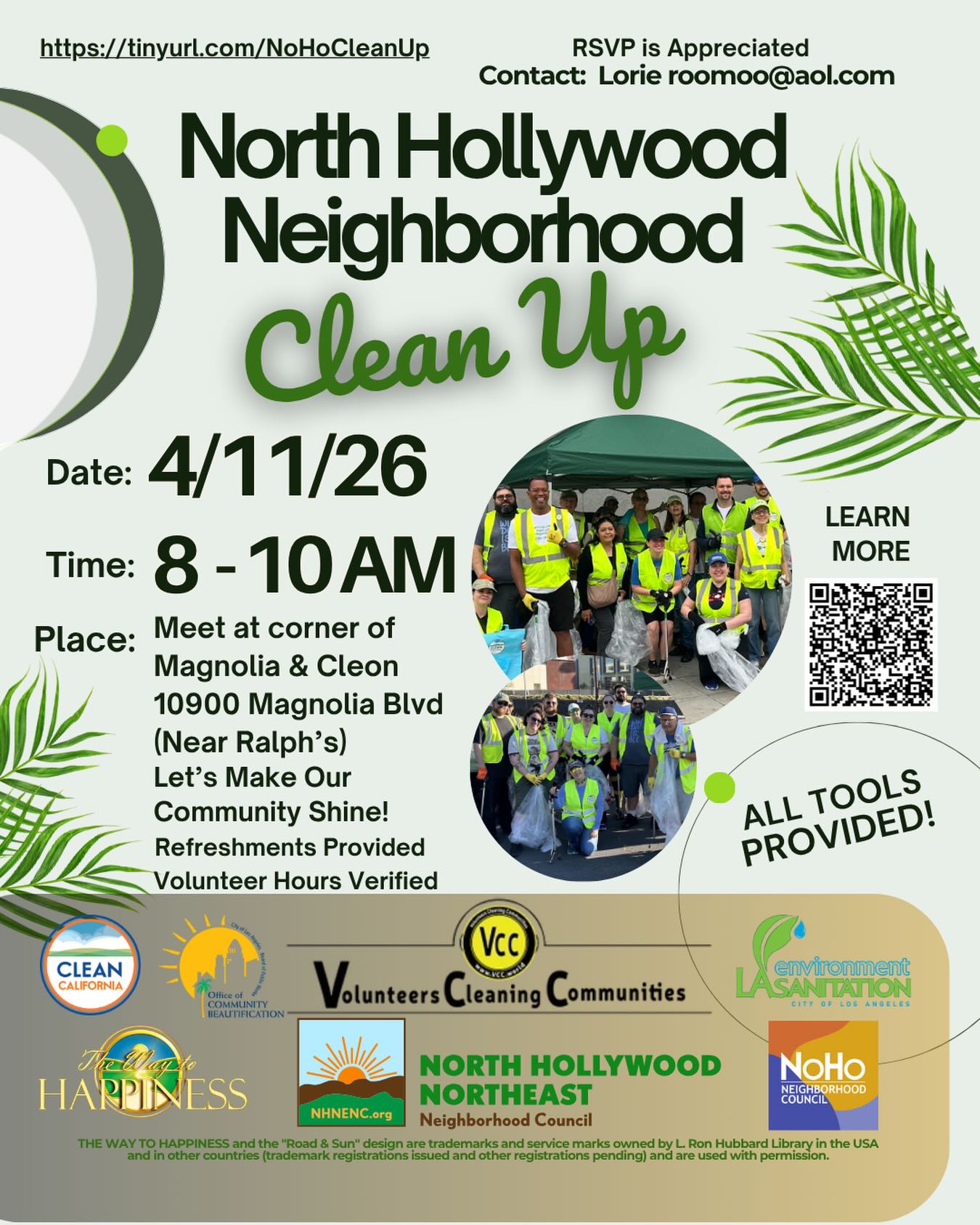 The North Hollywood Neighborhood Clean Up is a community event aimed at beautifying the area. Participants can expect all tools to be provided along with refreshments. Volunteer hours will be verified, making it a great opportunity to contribute to the community.