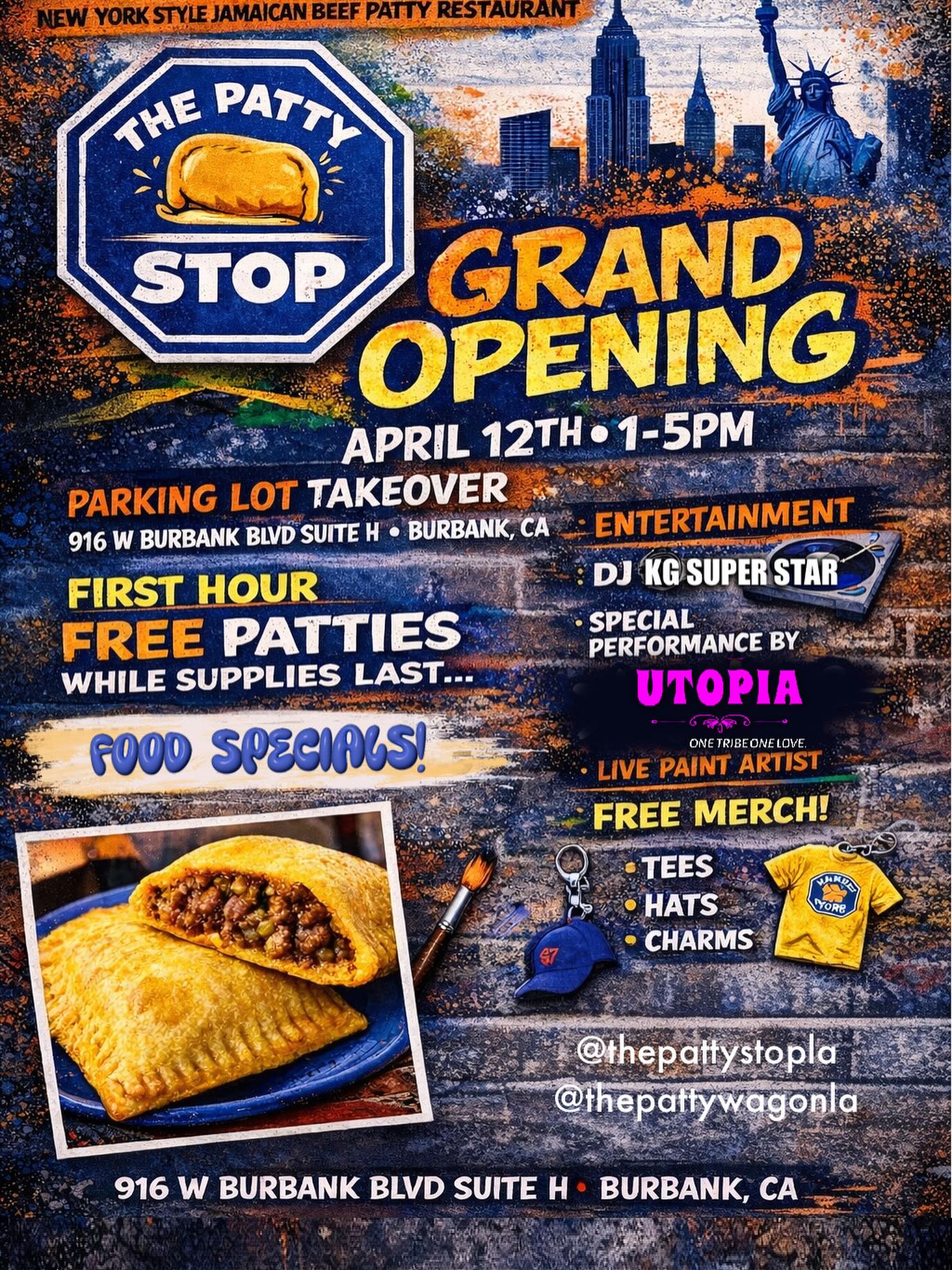 The Patty Stop Grand Opening promises a fun-filled day with a live DJ, exciting raffles, and giveaways. Guests can also enjoy some creative painting activities while tasting delicious food. It's a great way to celebrate the launch of this new spot in town.