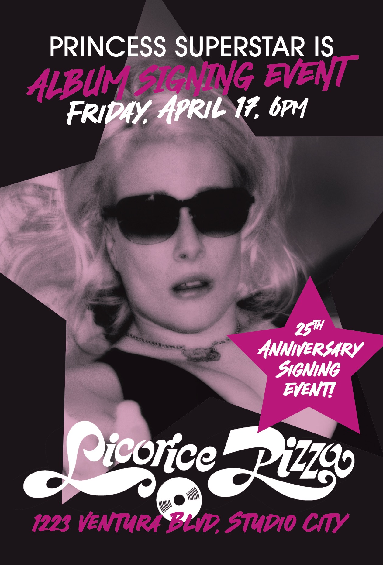 Princess Superstar is stopping by for a special fan event where fans can meet the cult-favorite rapper and DJ in person. She will be signing copies of her new vinyl release, a special 25th anniversary edition of her breakout album, complete with additional remixes. The album comes pressed on a unique pink marbled wax and offers a fun chance to grab a limited edition piece of music history.