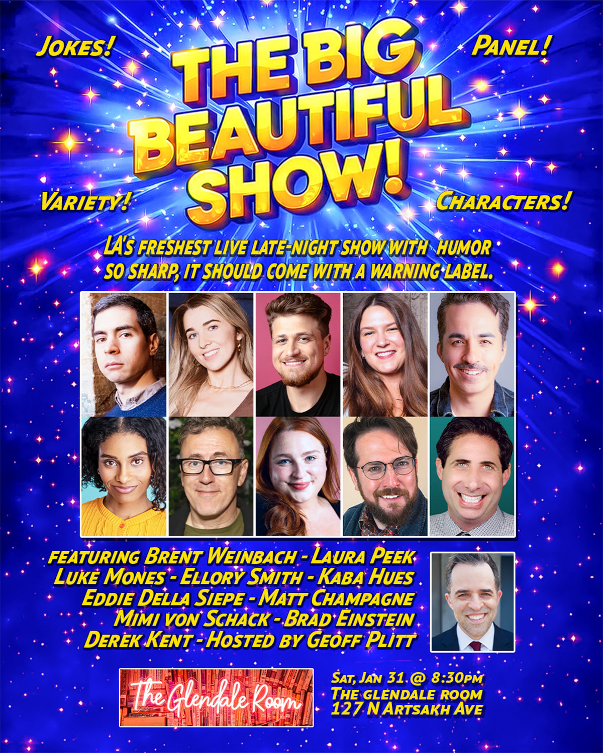 Live late-night comedy show with sharp humor and characters.
